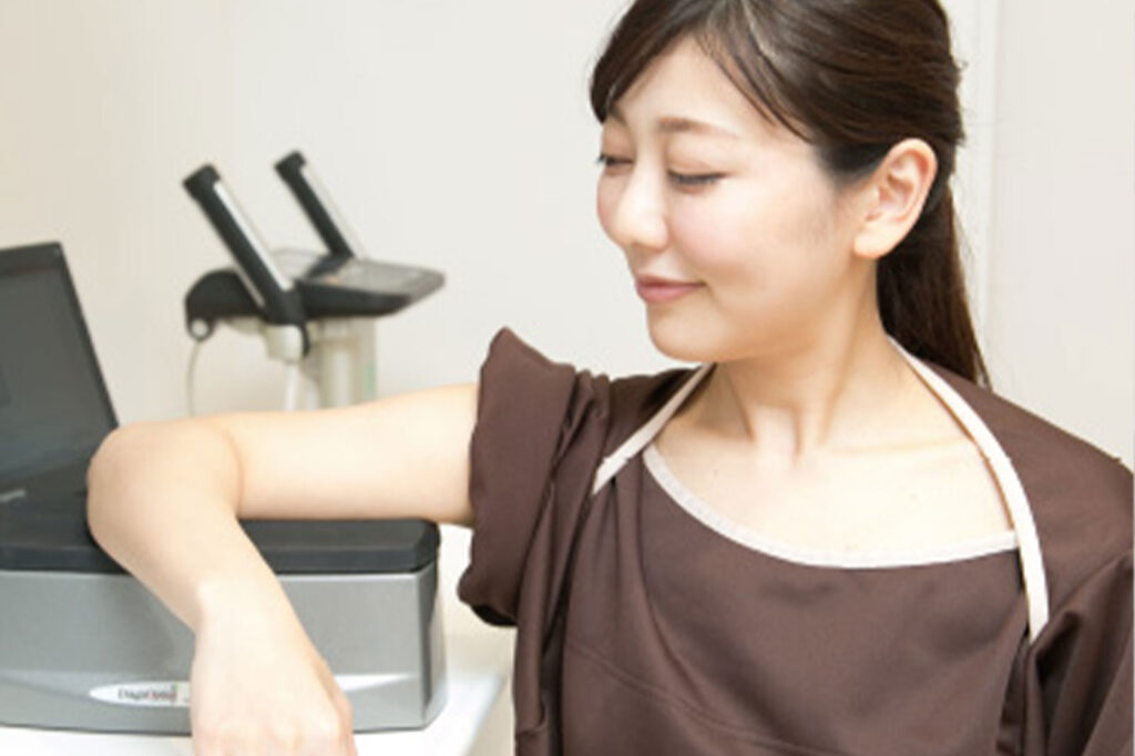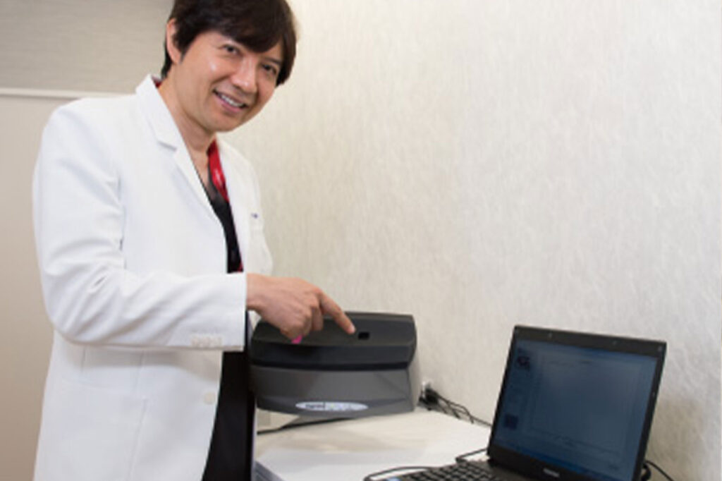 いわゆる「身体のこげつき度」を測る機器です。測定法はいたって簡単で、腕を数分間乗せていただくだけであなたの糖化年齢がわかります。