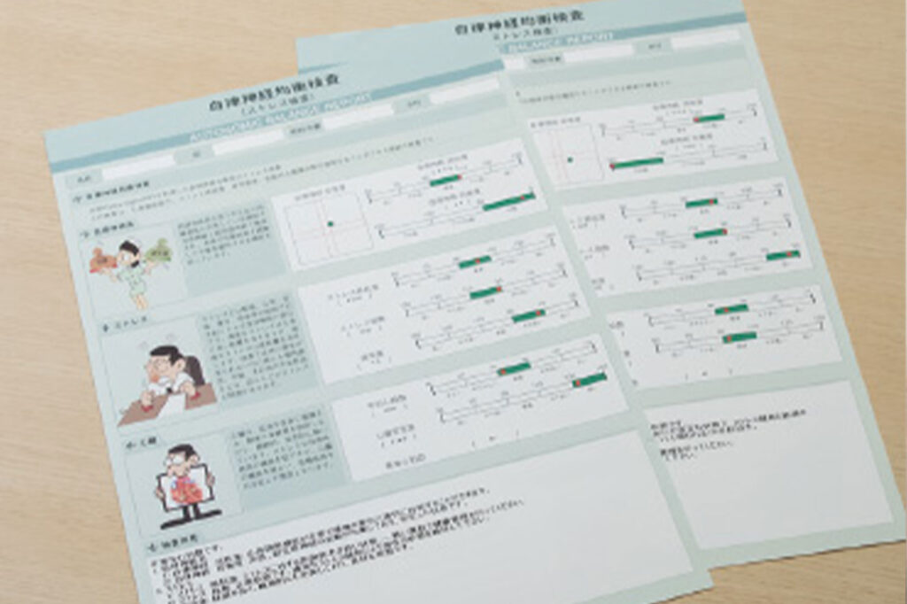 これはストレスの影響を受けやすい自律神経のバランスを調べる機器です。この検査は自律神経の状態だけでなく、受けているストレスの大きさ、血管の状態まで測定することができます。