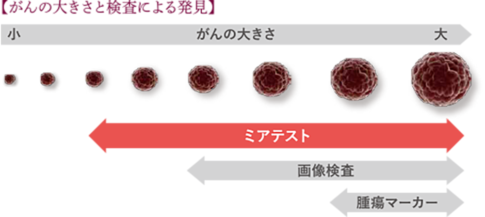こちらも1回の採血5ccで検査ができます。ミアテストでは、画像検査で発見することが困難な1cm以下のがんについて発見することが可能です。検査の結果は部位別に判定されます。また、再発も発見できる可能性がありますので、がんに罹られた方が経過をみるためにこの検査をお受けになることも多いようです。